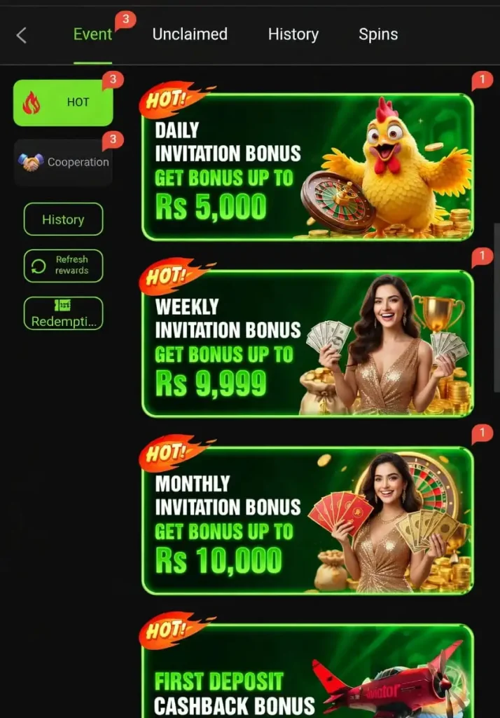 New members receive a welcome package with free spins and extra balance. Daily rewards, weekend multipliers, and referral income help you earn more. Lucky draws and tournaments give everyone a chance at bigger jackpots.